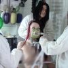 The three nurses prep there patient in the gas chair by locking the bar and getting her into the head stabilizer. The gas starts slow and her eyes roll as they talk her down slowly and calmly. The nurses play with her hair to relax her even more as she drifts off into a deep sedated sleep in the infirmary.