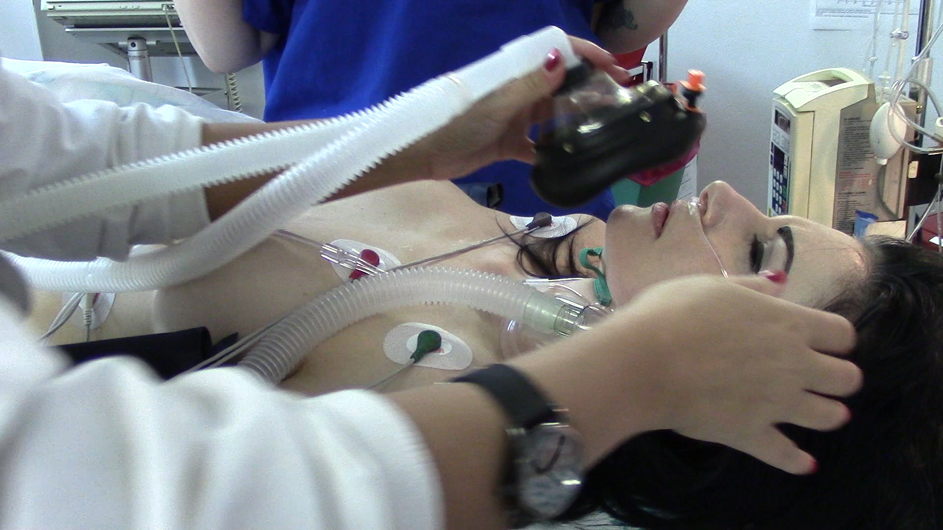 Nyxon is prepped and ready for gas in this calming display of medical anesthesia. The doctors talk her down slowly as the gas fills her lungs putting her into a deep relaxed sleep.